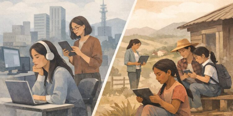 Esta brecha territorial afecta más a las mujeres, quienes suelen enfrentar mayores obstáculos económicos y educativos. Además, la mayoría de las personas se conecta mediante teléfonos móviles, un dispositivo que limita las actividades educativas, laborales o formativas que se benefician de pantallas más grandes, programas especializados o mejor ancho de banda.