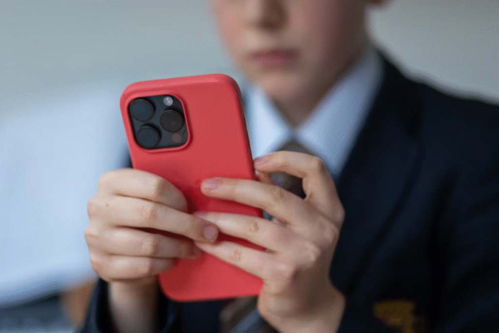 Un alumno inglés de 12 años mirando su teléfono móvil.Matt Cardy (Getty Images)