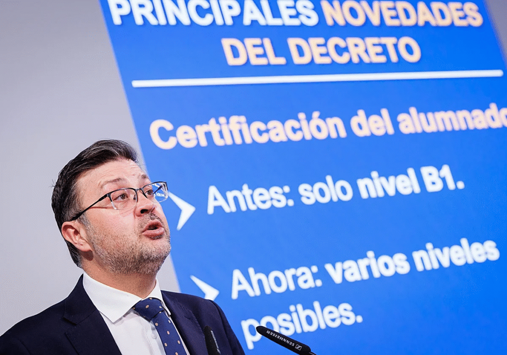 También se revisan los requisitos de competencia lingüística del profesorado. En Educación Infantil y Primaria se exigirá un nivel B2, mientras que en Secundaria y etapas posteriores será necesario un nivel C1. No obstante, el profesorado con al menos diez meses de experiencia previa desde el curso 2018-2019 podrá continuar con un nivel B2.