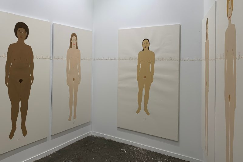 Definitivamente, es un problema mundial. El problema de las mujeres, es un problema mundial. Por eso estamos de pie, ellas —en su dibujo— están de pie y sin miedo, desnudas y reconciliadas con su identidad femenina. Decidí deliberadamente no pintarlas como en Google. Todas ellas están desnudas, y yo también lo estoy. Lo hice para demostrarles que somos iguales. Ellas y yo somos lo mismo.