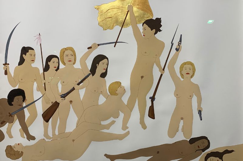 La artista afgana Kubra Khademi, ha sido uno de los nombres más comentados de la Feria de Arte Contemporáneo ARCO Madrid por su colección Pan, Trabajo y Libertad, en la que en una de sus piezas se ven a las poderosas mandatarias internacionales celebrando y gozando una orgia entre ellas con sus cuerpos desnudos.