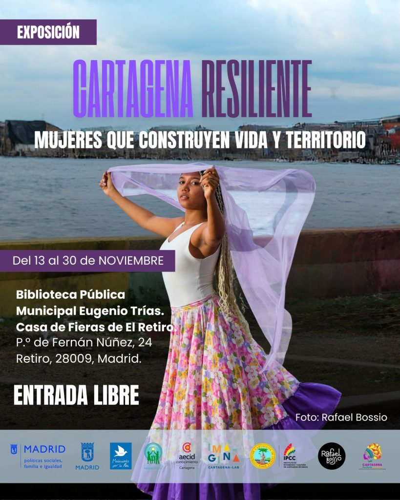 La Biblioteca Pública Municipal Eugenio Trías de El Retiro, en Madrid, acoge hasta el 30 de noviembre la exposición fotográfica Cartagena Resiliente: Mujeres que construyen vida y territorio, una muestra que da visibilidad al liderazgo de las mujeres y los procesos comunitarios que impulsan en distintos barrios populares de Cartagena de Indias (Colombia).