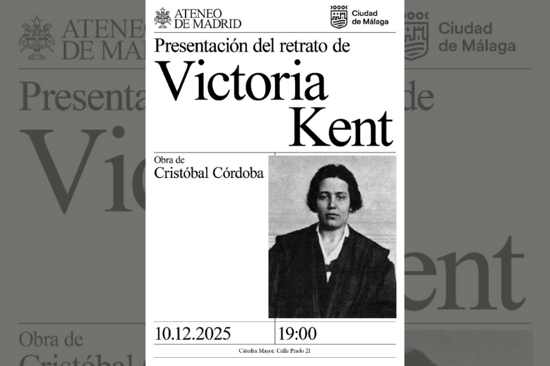 La abogada y política española Victoria Kent (1892-1987) se incorporará este 10 de diciembre a la Galería de Retratos del Ateneo de Madrid, a través de una obra del artista Cristóbal Córdoba, que se suma a la iniciativa Las mujeres en su sitio, con la que la institución y el Ayuntamiento de Málaga buscan corregir la ausencia histórica de referentes femeninos y reconocer su aportación intelectual y política.